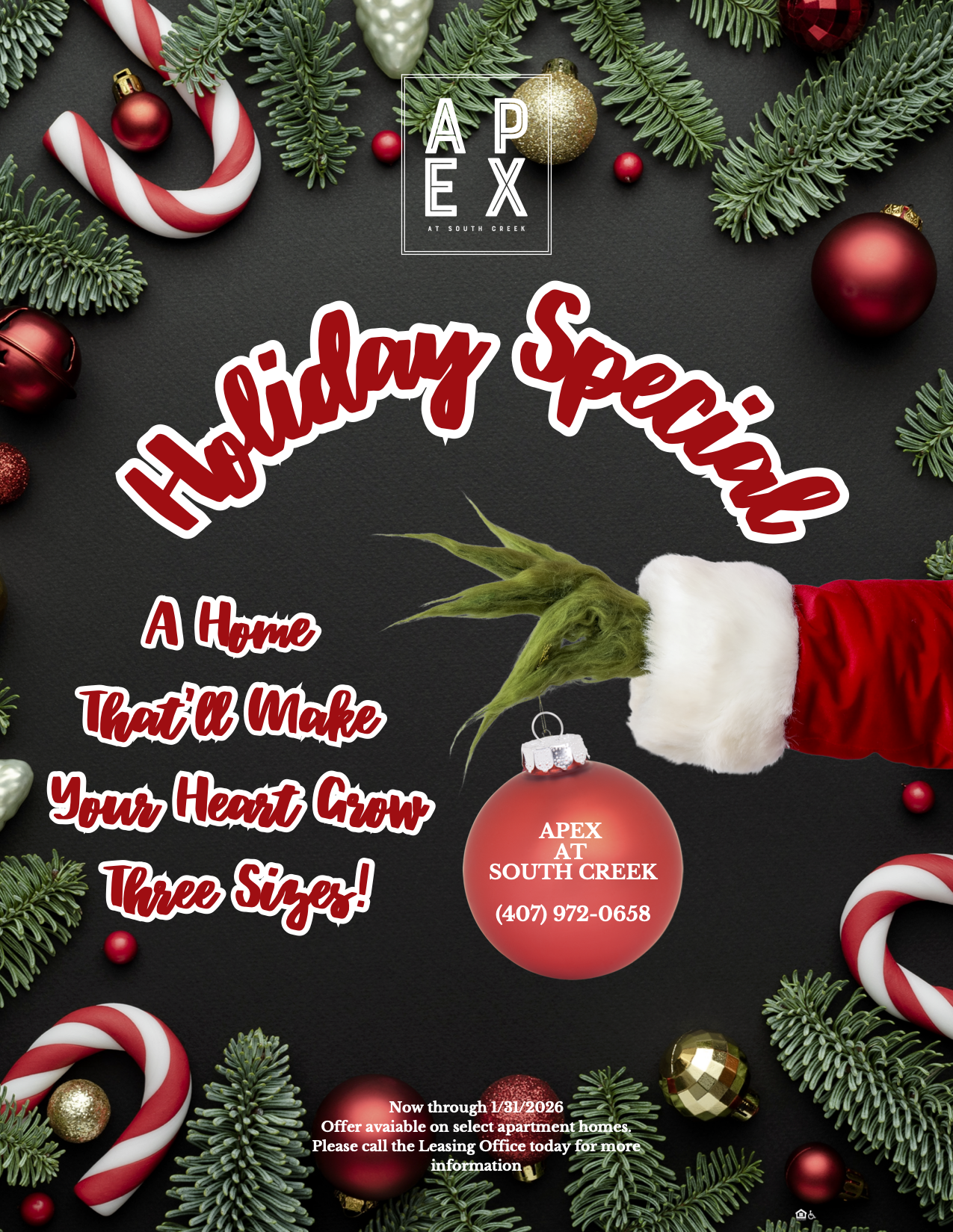 APEX South Creek blends breezy Florida living with every modern luxury. Each one, two and three-bedroom apartment is complete with premier features and finishes, from oversized oval soaking tubs to gorgeous granite countertops. Plus, private screened-in patios and large walk-in closets to make the most of your space.
